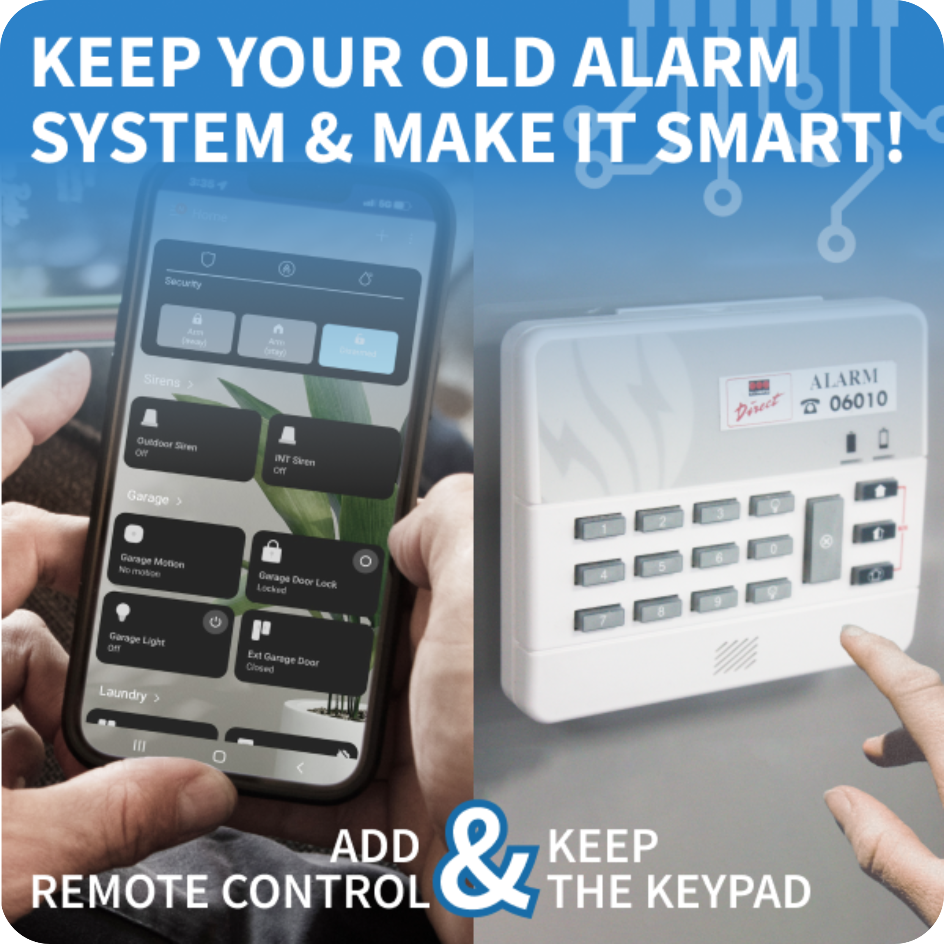 Adds smart home features by connecting to any traditional alarm panel |