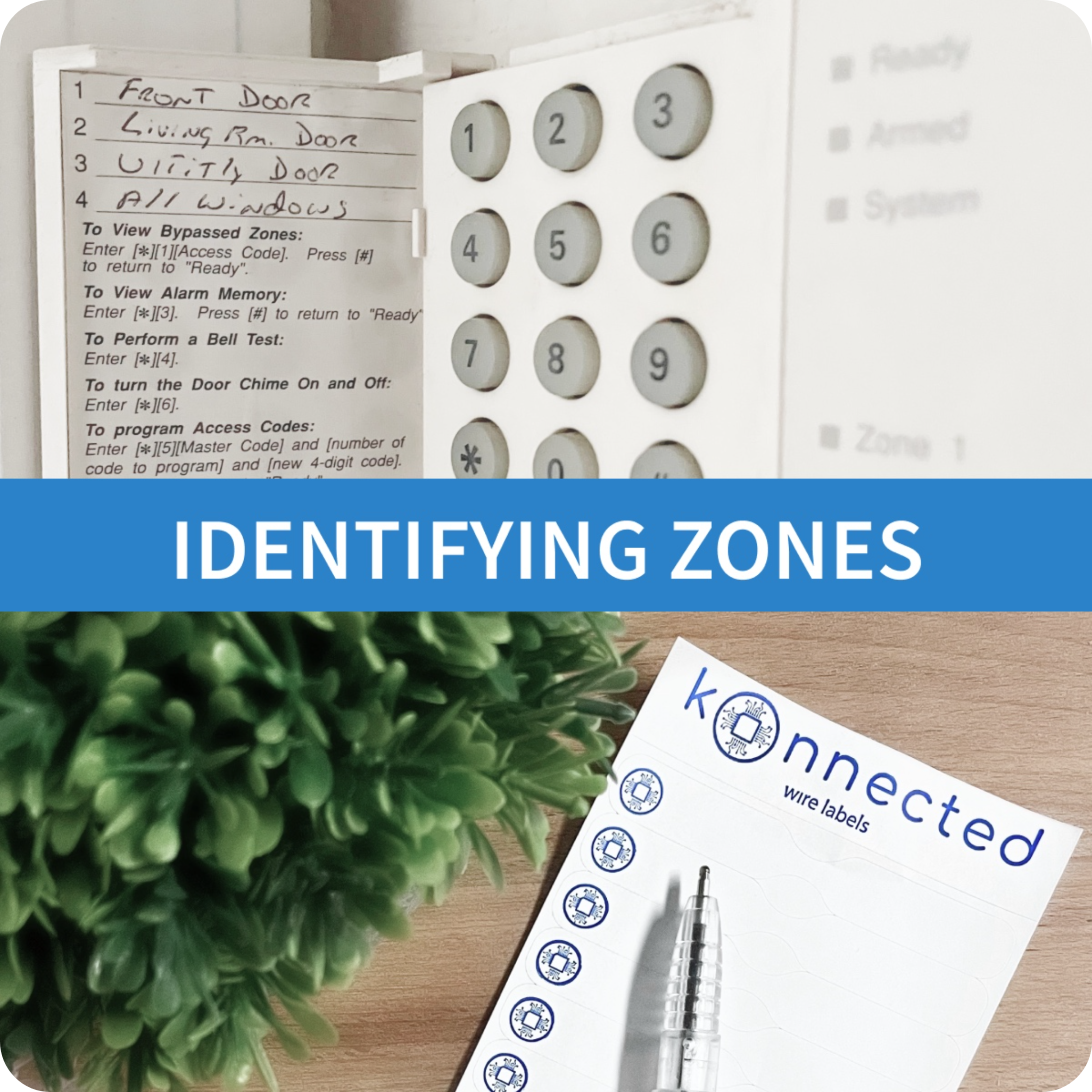 A zone in the context of alarm systems refers to a sensor or a group of sensors. Each zone in your system will show up in your smart home app as an individual device that you can name. For example, a single door sensor wired to a zone may be named "Front Door". You may also have a group of windows wired together on one zone and call it "Downstairs Windows". A good place to start is by looking at your existing alarm system and count the number of zones. Often the keypad from your old system will have a zone listing either handwritten on a label, or programmed into the display.