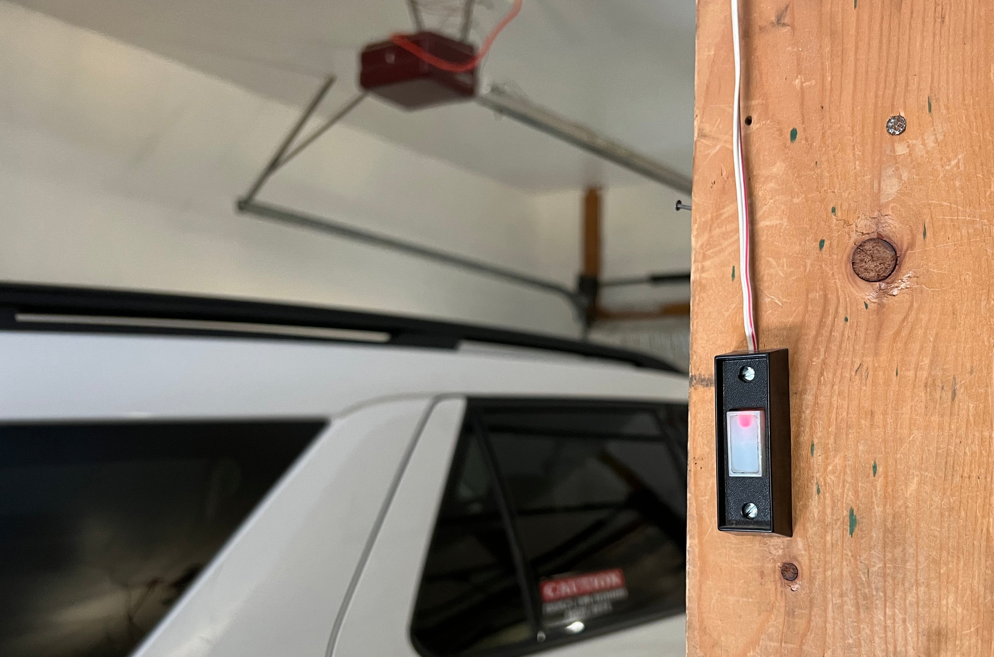 - Measures fixed distance between rolled-up garage door and the sensor to detect if the garage door is open
