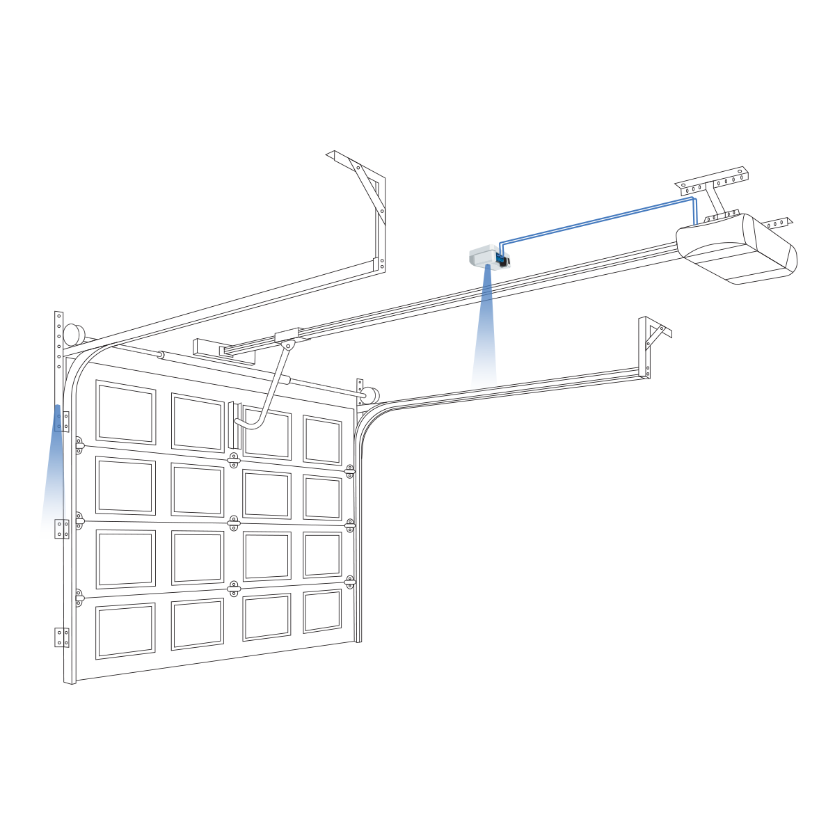 • Measures fixed distance between rolled-up garage door and the sensor to detect if the garage door is open